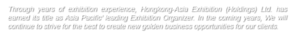 Hong Kong Asia Exhibition (Holdings) Ltd. will continue to uphold professionalism and innovation, providing high-quality services to customers and partners, promoting the sustainable development of the exhibition industry, and consolidating its position as a leading enterprise in the Hong Kong exhibition market.