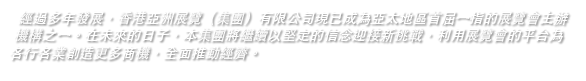 我們香港亞洲展覽於1992年成立,本集團一直致力籌劃展覽會及市場推廣業務,深受參展商的認同及肯定。